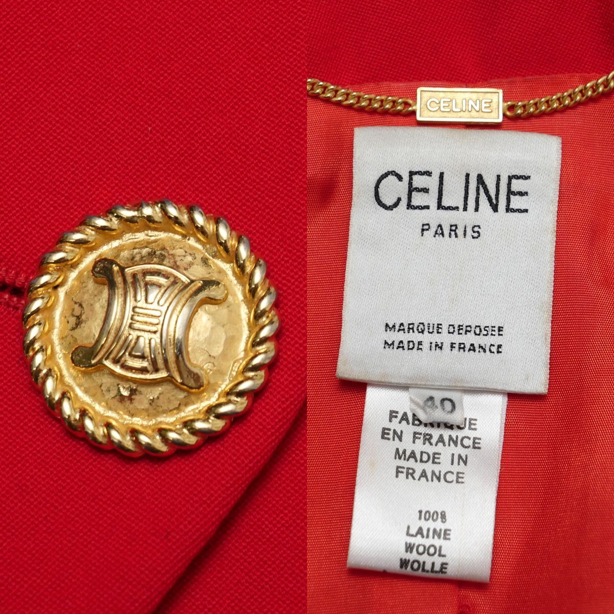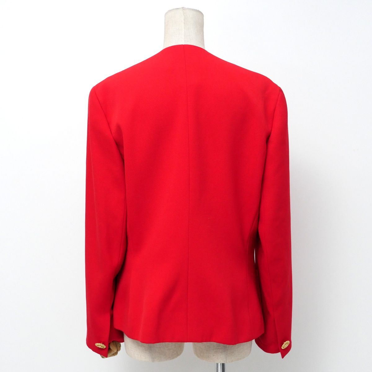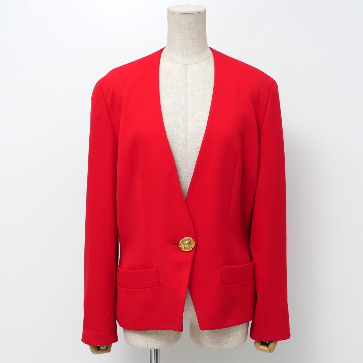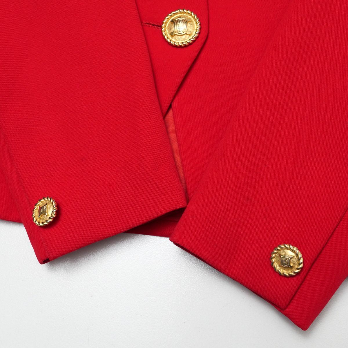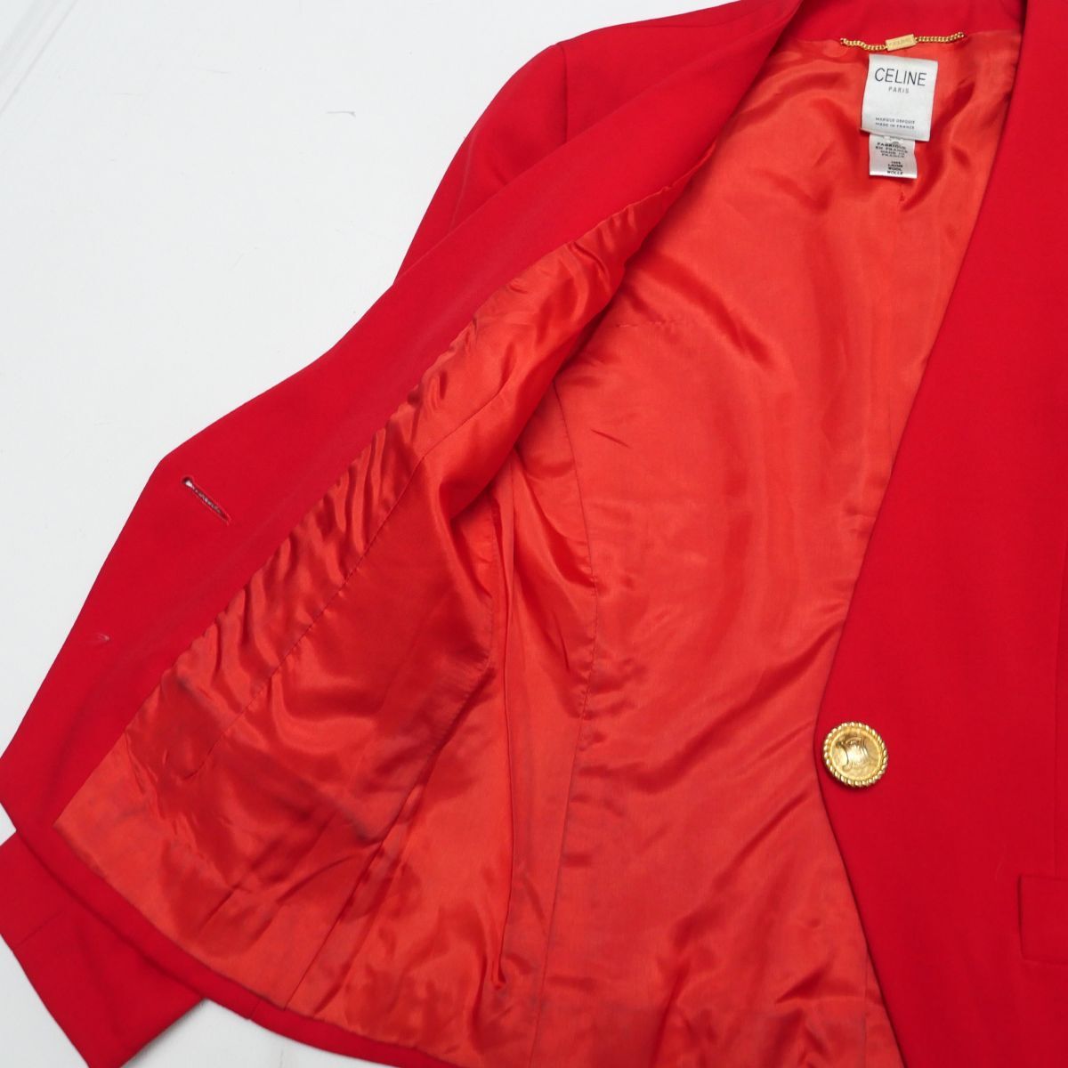 | GS5690☆セリーヌ CELINE ヴィンテージ ノーカラージャケット トリオンフボタン 金ボタン ウール レッド サイズ40 フランス製 | |||
