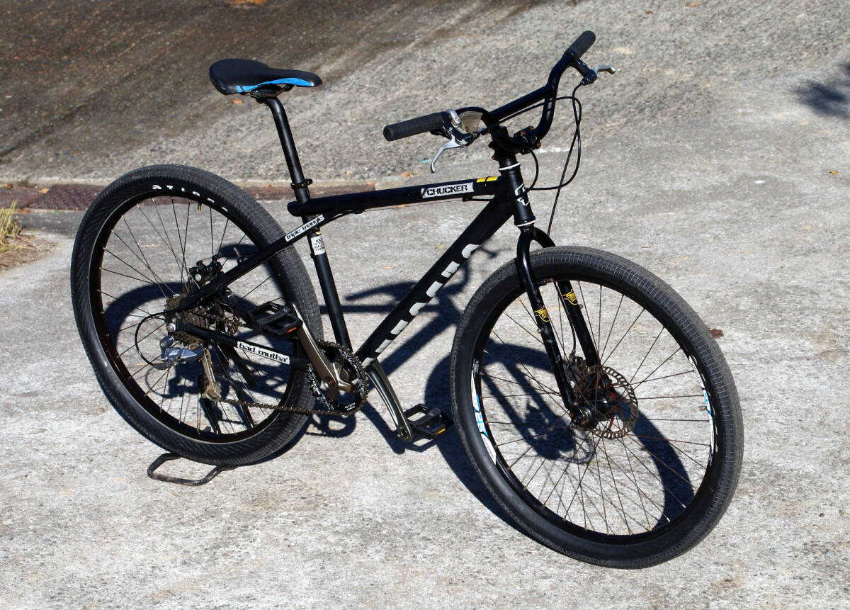 00年代初頭のGT チャッカーです。MTBブームをうけて山ではなく”ストリートで乗るマウンテンバイク”という大小、強弱、矛盾のようなバイクです。ただ街乗りなのでデザインは頑張ったようで当時のアメリカンブランドはロゴをでっかくバーンとつけていたのが、このチャッカーはブランドロゴをヘッドとダウンチューブにさりげなく配置しています。ただ誰がみてもGTとわかるトリプルトライアングルフレームなのでブランドロゴがいらないともいえますが。| 出价者 | 信用 | 价格 | 时间 |