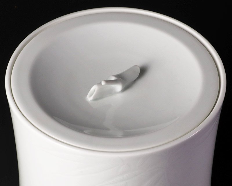 【井上萬二】 昭和4年(1929)、生まれ。酒井田柿右衛門、奥川忠右衛門に磁器制作を学ぶ。日本伝統工芸展、日本陶芸展入選入賞。昭和62年(1987)、日本伝統工芸展で文部大臣賞受賞。佐賀県重要無形文化財。平成7年(1995)、白磁で国の重要無形文化財保持者に認定。日本工芸会参与・一水会委員・佐賀県陶芸協会理事・西部工芸会幹事。 |