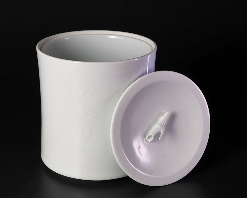 白磁に描かれた竹がほのかに浮かび上がり、上品な趣を添えています。小さな竹の摘みが愛らしく、心あたたまる水指です。 ★商品は井上萬二の作品である事を保証致します。 |