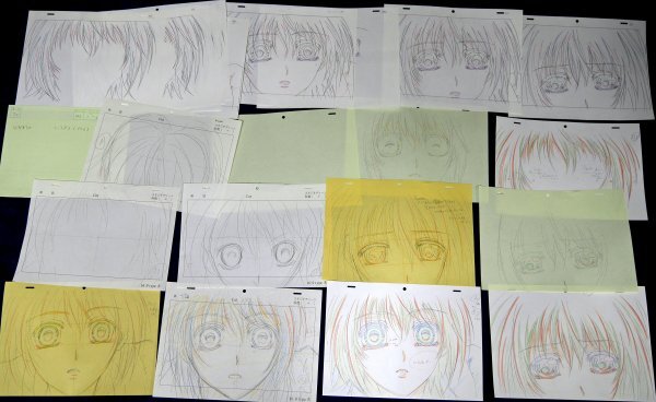 ■実際のアニメ製作に使用された直筆の原画など製作素材の一式。