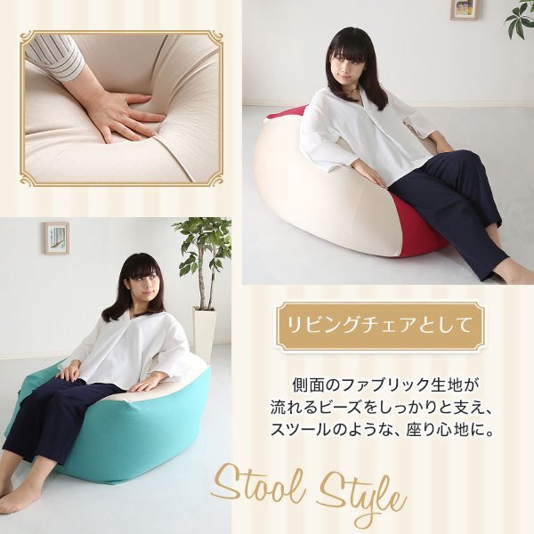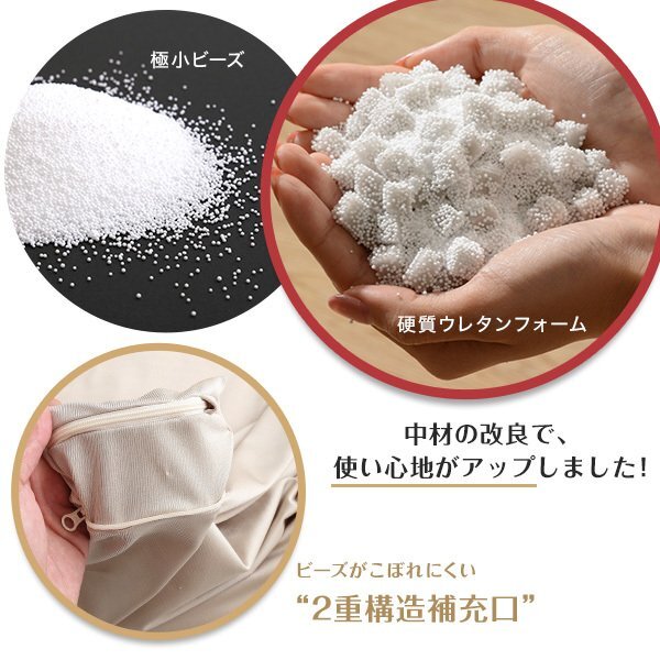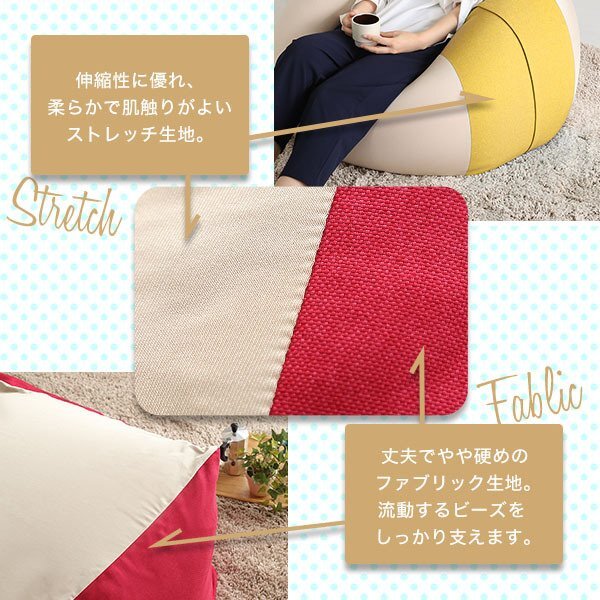 | 【ポイント】 2wayで使える、洗えるカバー付きビーズクッションです。 ヘタリに強い新素材高弾性ウレタンフォームを配合。 高品質な日本製で、2種類のカバー生地が伸縮性を調節します。 |