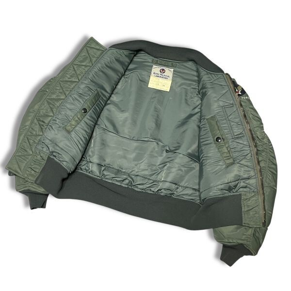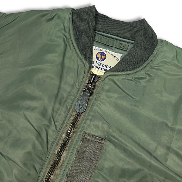 こちらは東洋エンタープライズ社が1950年代のオリジナル仕様を忠実に復刻した旧バズリクソンズのMA-1フライトジャケットです。中でも、限定500着のテストサンプルとして製作された非常に希少な個体であり、フロントやポケットに当時のSCOVILL刻印ジッパーを再現するなど、細部に至るまでヴィンテージ仕様を忠実に再現しております。