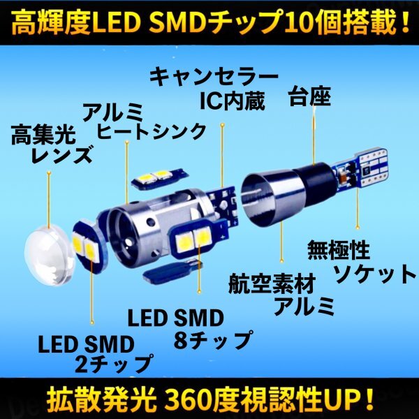 | バルブ規格:T10 T16(兼用) 光源:3030SMD チップ数:10連(正面2 側面8) 光束:900LM 色温度:6000K ホワイト 起動電圧:DC12V-28V(12V車/24V車対応) 消費電力:2.5W 照射角度:360° 防水規格:IP65 LED寿命:約50000時間 セット内容:LEDバルブ 2個 | ||