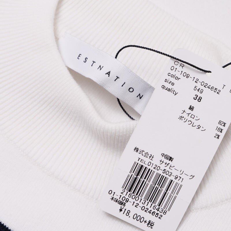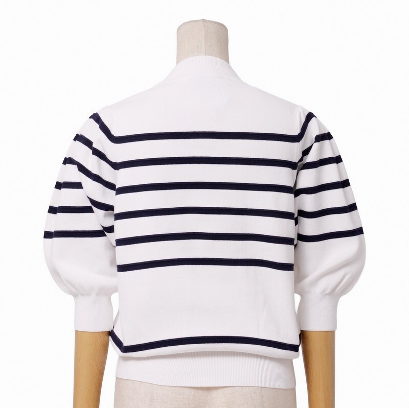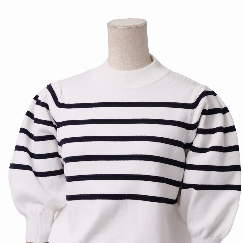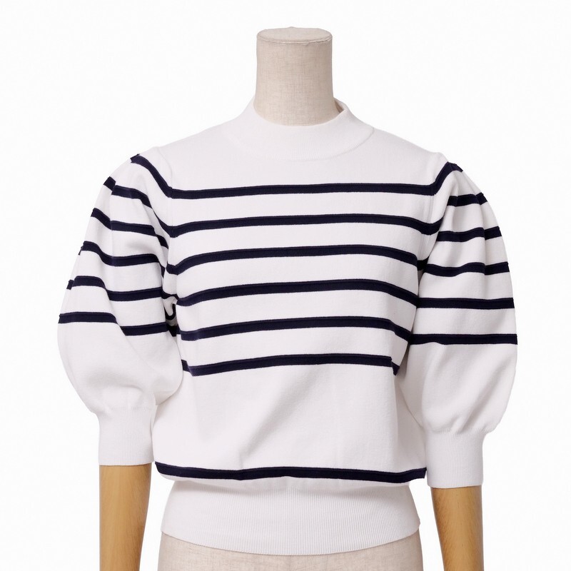 | MI3665#未使用*エストネーション*ESTNATION*コットンニットプルオーバー*バルーンスリーブ*七分袖*ボーダー*ホワイト×ブラック*サイズ38 | |||