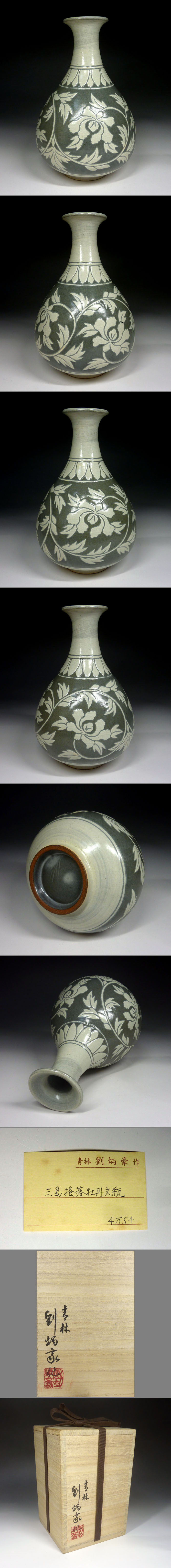 | 概要 | 劉 炳豪の三島掻落牡丹文瓶です。 |