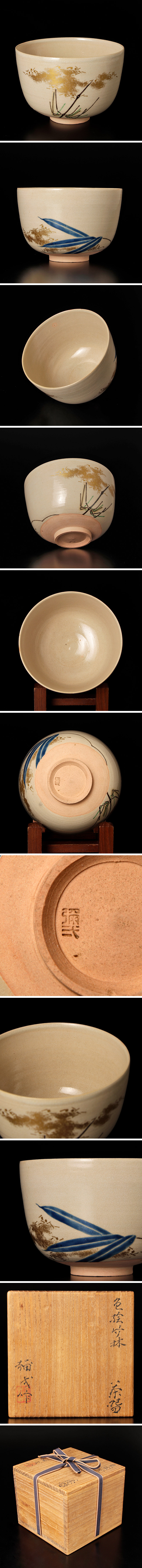 | 【古美味】楠部彌弌作 色絵竹林茶碗 茶道具 保証品 |