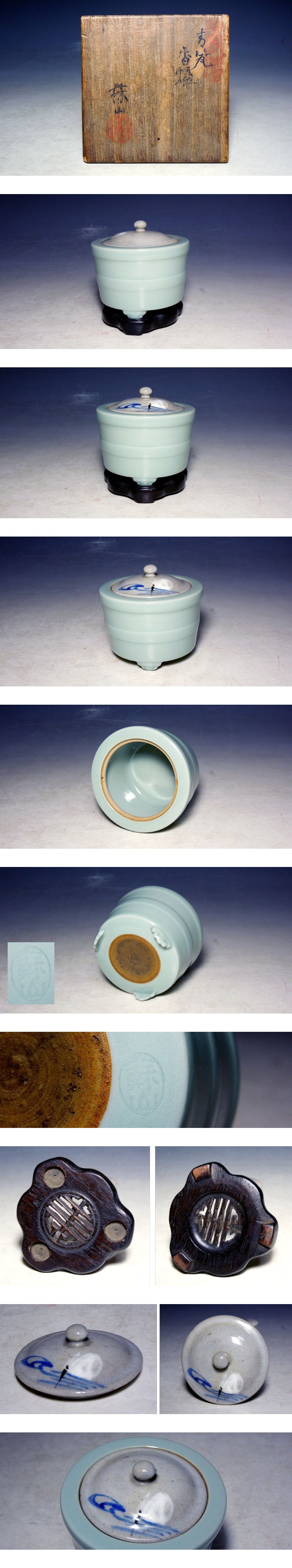 | 【 帝室技芸員 初代諏訪蘇山造 青磁香炉 共箱 】 | |
