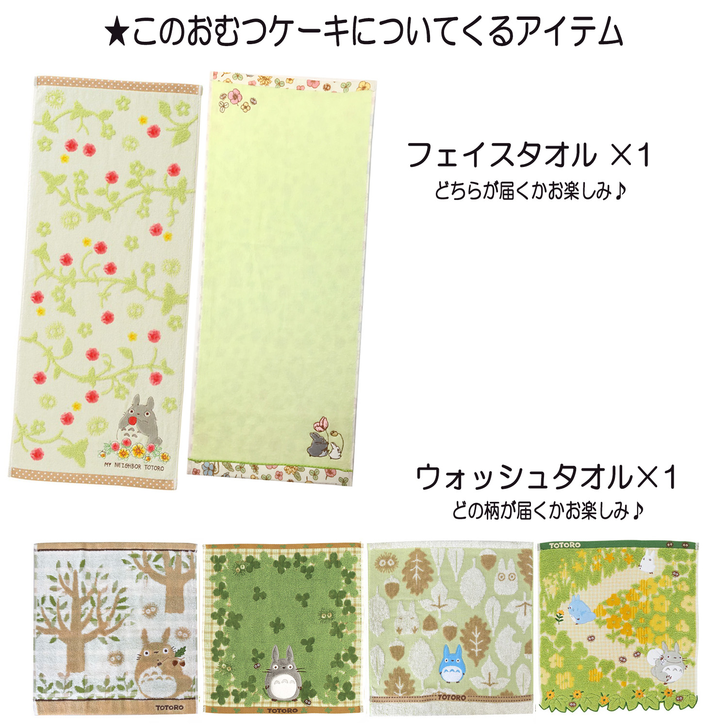 ●となりのトトロのぬいぐるみ×1 ●となりのトトロのウォッシュタオル×1 ●となりのトトロのフェイスタオル×1 ●パンパース テープSサイズ 22枚 or Mサイズ 19枚 ●デザインギフトボックス ●メッセージカード ●ギフトラッピング ●造花 ※造花、リボンのお色は弊社スタッフのコーディネートになりますので、画像とは異なる場合がございます |