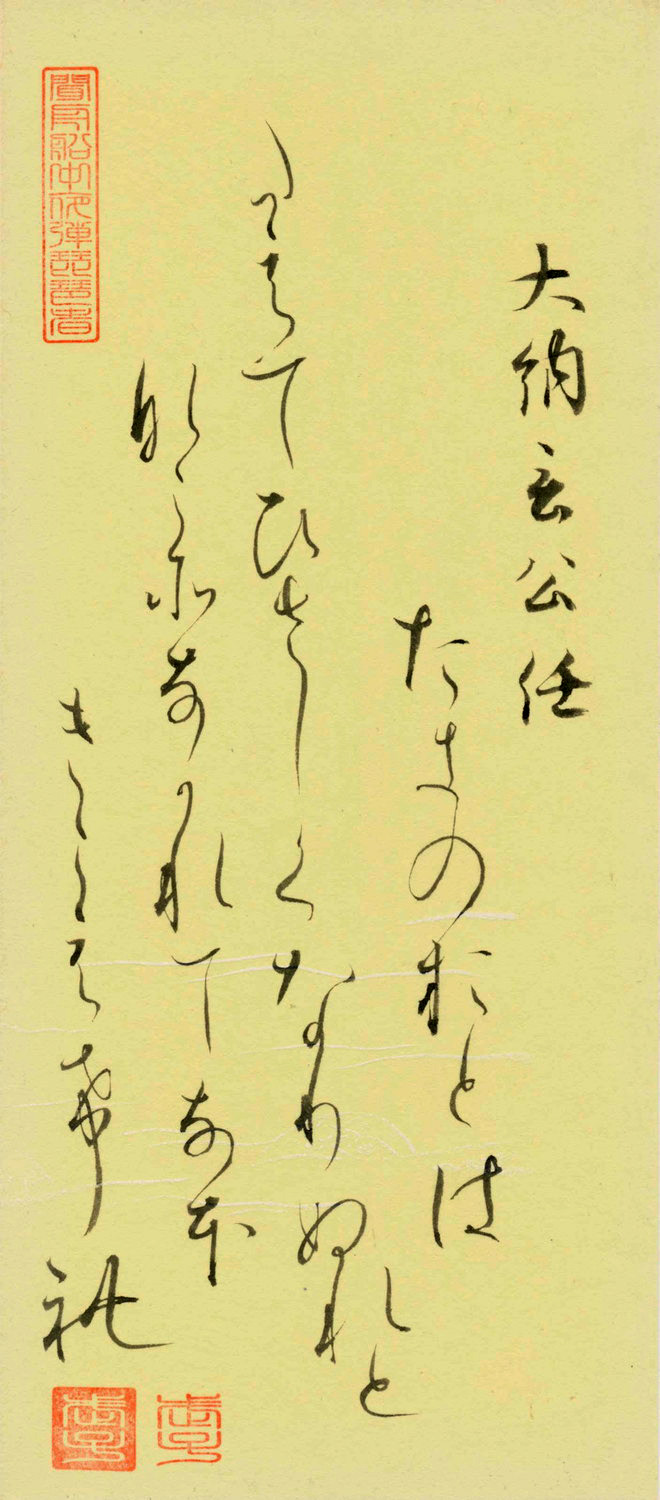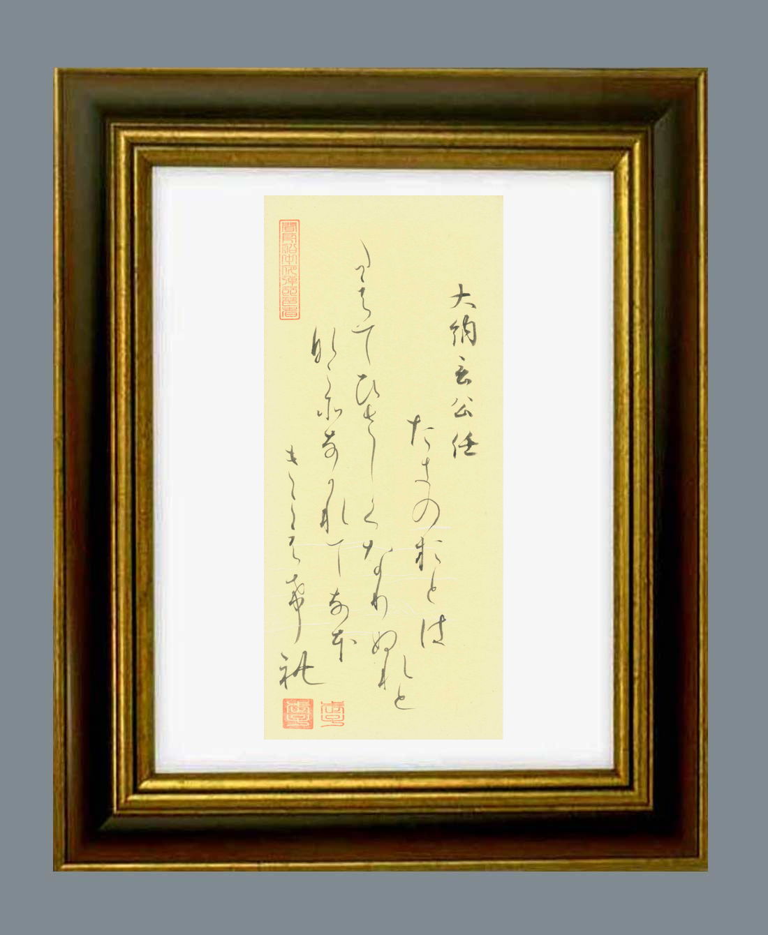 伊達慶邦の正室で伊達孝子(たかこ)は、漢文と違った和歌の素養を発揮しなめらかで、やわらかな書体は、茶室の雰囲気を重厚なものにさせた。