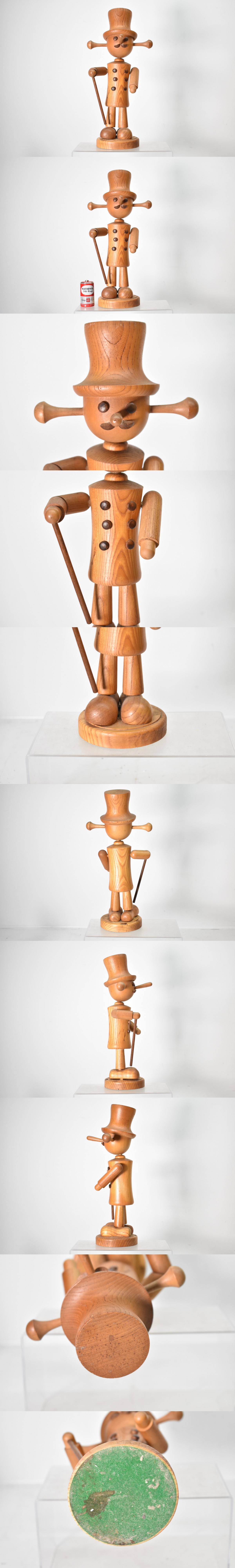 木製人形 ステッキを持った紳士 オブジェ 約32cm [おじさん][シルクハット][置物][当時物]H