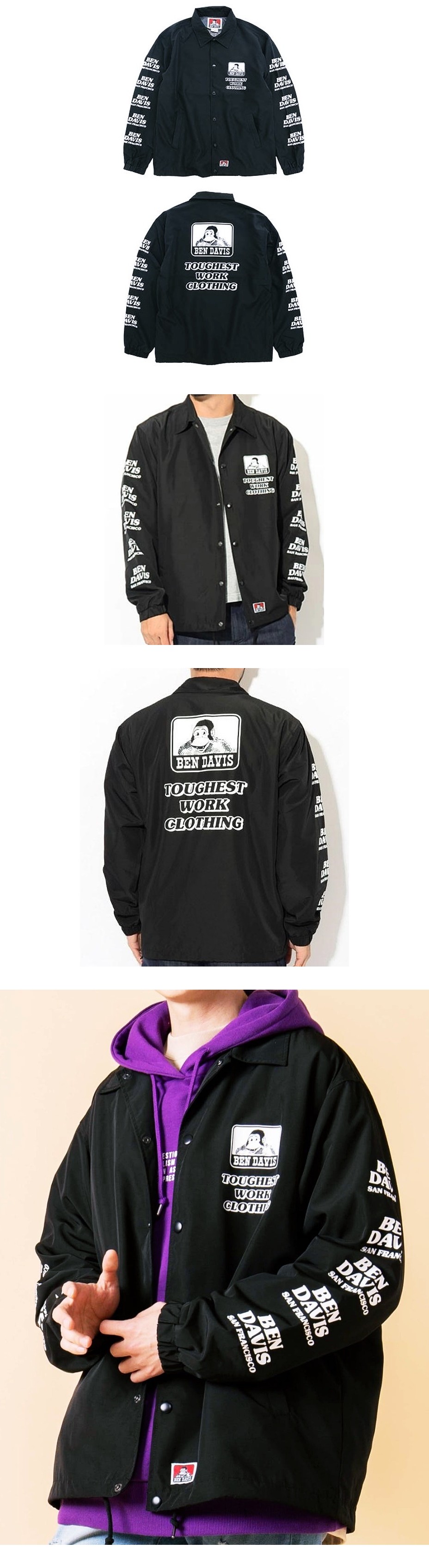 「美品!BEN DAVIS ベン・デイビス ボタンダウン スリーブロゴ コーチジャケット(黒L-O相当)」