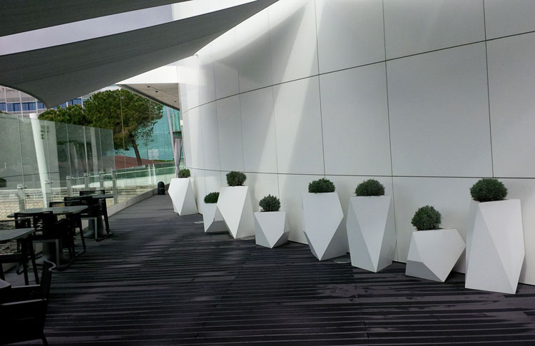 高さ105cmという存在感のあるサイズながら、素材に高級アルミニウムを採用することで重量は約10kgと、同サイズの樹脂製や陶器製に比べて驚くほど軽量です。高品質な粉体塗装仕上げにより、屋外・屋内を問わず、その洗練された白の輝きを長く保ちます。