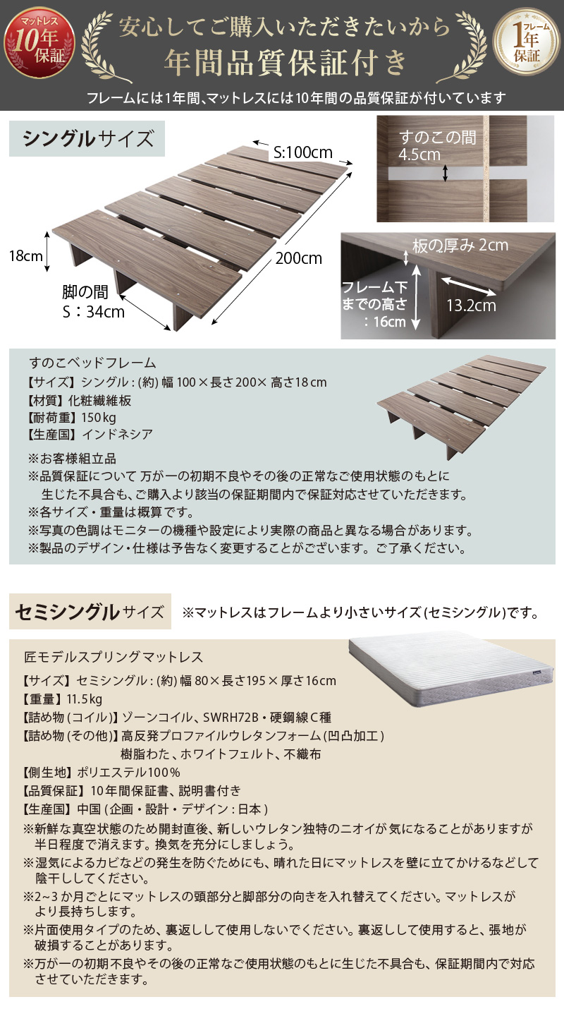 ![]() 天然木調 すのこ KASANE FLAT ローベッドS+匠モデルマットレスSSセット シングル シャドウグレー ![]()
