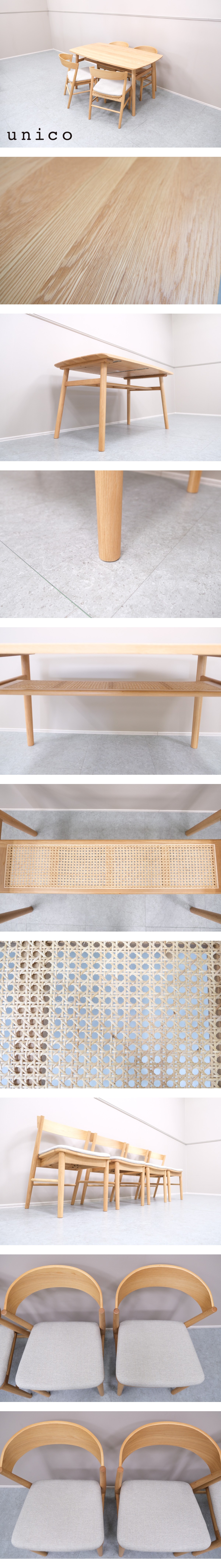☆展示極美品☆unico ウニコ ダイニング5点セット SOLK ソルク ダイニングテーブルW1400 チェア オーク 18万 | |||