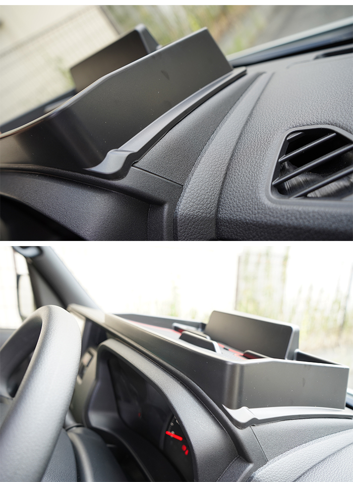 | 車種専用設計で装着感も違和感なく装着が可能! 上質なABS樹脂を採用することにより 耐久性、高級感のある仕上がりになってます! 他車と差を付けたい貴方に是非オススメのアイテムです。 ■適合 ・ハイゼットカーゴ S700V/S710V (R3/12〜) ・アトレー S700V/S710V (R3/12〜) ※6.8インチスマホ連携ディスプレイオーディオ装着車、オーディオレス車のみ対応 ※注意事項 ・AM/FMラジオ、9インチスマホ連携ディスプレイオーディオ装着車には非対応 ■素材:ABS樹脂 ■カラー:ブラック ■セット内容 ・ダッシュボードトレイ×1 ・洗えるゴムマット×1 ・滑り止めマット(スマホ用)× 1 |