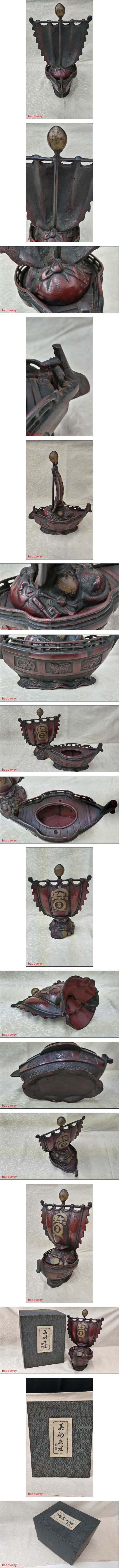 | ご覧頂き、誠にありがとうございます。 迅速・丁寧なお取引を心がけております。 出品詳細を最後まで読んでいただき、入札をご検討下さいませ。 ■商品内容 金属製 寶船 宝船 置物 約28×34×15cm 重量約4.2kg 金属工芸 縁起物 和風 インテリア アンティーク オブジェです。 実家の整理品です。 磁石に反応はしますので鉄製だと思います。 当方専門知識はございませんのでご了承ください。 ただし個人の感覚の誤差や見逃しがある事もありますので、ご納得うえ、ご入札をお願い致します。 完品をお求めの方や、過度に状態を気にする方は入札をお控え下さいますようお願い致します。 ※こちらの商品は同梱不可です。 ※専門外の商品ですので記載事項に誤りがある場合もございますが予めご了承ください。 ■商品サイズ ・横 約28.0cm×高さ 約34cm×幅 約15cm×重量 約4.2㎏ ※素人採寸のため若干の誤差はご容赦ください。 ■商品状態 自宅での長期保管品です。 経年による薄汚れや細かな擦れキズ、錆、埃の付着などがあります。 元箱入りですが経年の汚れやシミ、テープ跡などがあります。 画像の物が全てになります。 専門家でないためキズ・ヨゴレ・変色・擦れ・など見落としがある場合があります。 ご了承ください。 写真でよく確認していただき、納得できる方のご入札をお願いいたします。 * ご注意 * ・画像に写っている物が全てとなります。 ・撮影時の照明等や、お客様のページをご覧になられる環境、(ディスプレイ設定・使用OS・携帯端末の種類) により、実際の商品の色目と多少異なって見える場合がございますので、予めご了承ください。 ・精密な検品を行っておりませんので細かな部分が気になる方はご入札をお控え下さい。 自宅保管の為完璧を求める神経質な方は入札を御遠慮下さいませ。 | ||