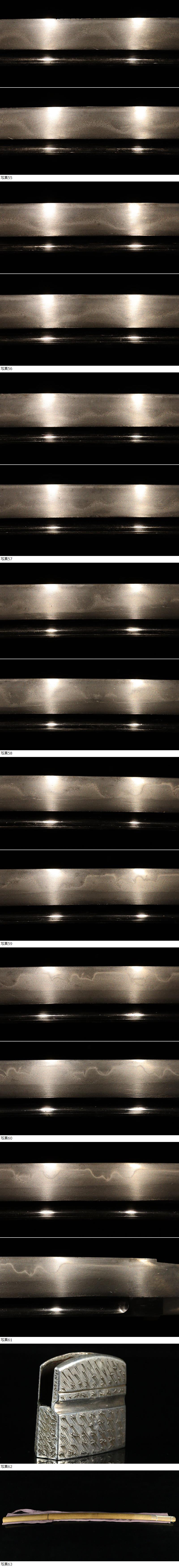 | ■刀剣のサイズ表示について 元幅・・・焼出し付近を測定しております 先幅・・・横手筋付近を測定しております 元重ね・・・焼出し付近の厚みを測定しております 先重ね・・・横手付近の厚みを測定しております (多少の誤差はご容赦ねがいます) ■銃砲類のサイズ表示について 全長・・・銃身先から台木尻までを測定しております 銃身・・・台木を除いて金属部分を測定しております (多少の誤差はご容赦ねがいます) 当社が出品する刀剣類は、入手した時の状態のまま出品しております。 ハバキ、小道具等も当社で調整したり付け替えたりはしておりませんので、合わせではないかというクレームは一切受け付けません。 刀身の疵も隠すことなく載せておりますので写真をよくご覧になってご入札ください。 疵に関して、説明がない等のクレームは一切受け付けません。 写真ではわかりにくい部分は質問欄やお電話でお問い合わせください。 但し、説明欄に表記のない刃切れに関してのみ返品やご相談に応じます。 ※ご落札しご購入されお手元に届いてから20日以内に 登録証に記載されている各都道府県の教育委員会にご連絡し 登録証の所有者変更を必ず行ってください | |||