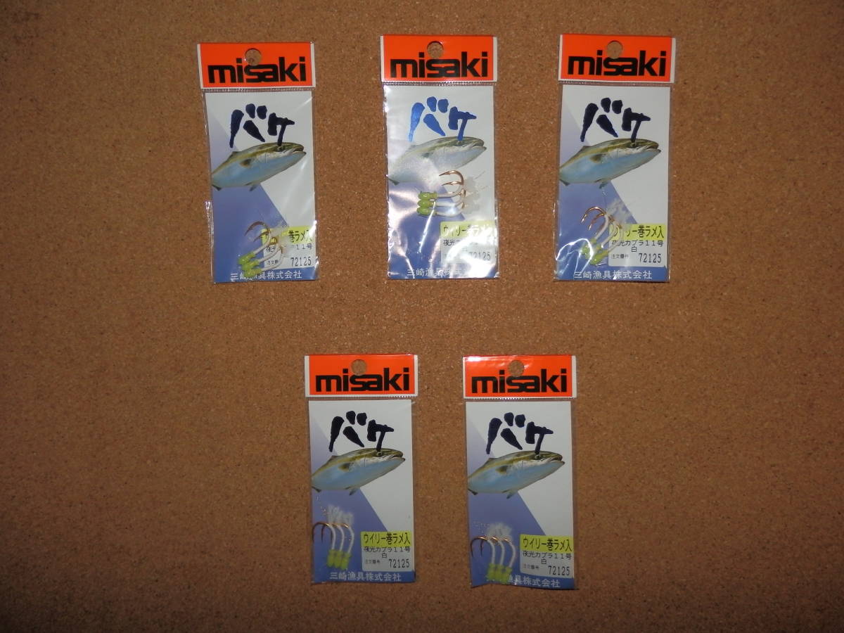 | ⑥保管品新品★misaki 三崎漁具 バケ ウイリー巻ラメ入 夜光カブラ 11号 白 5個セット | |||