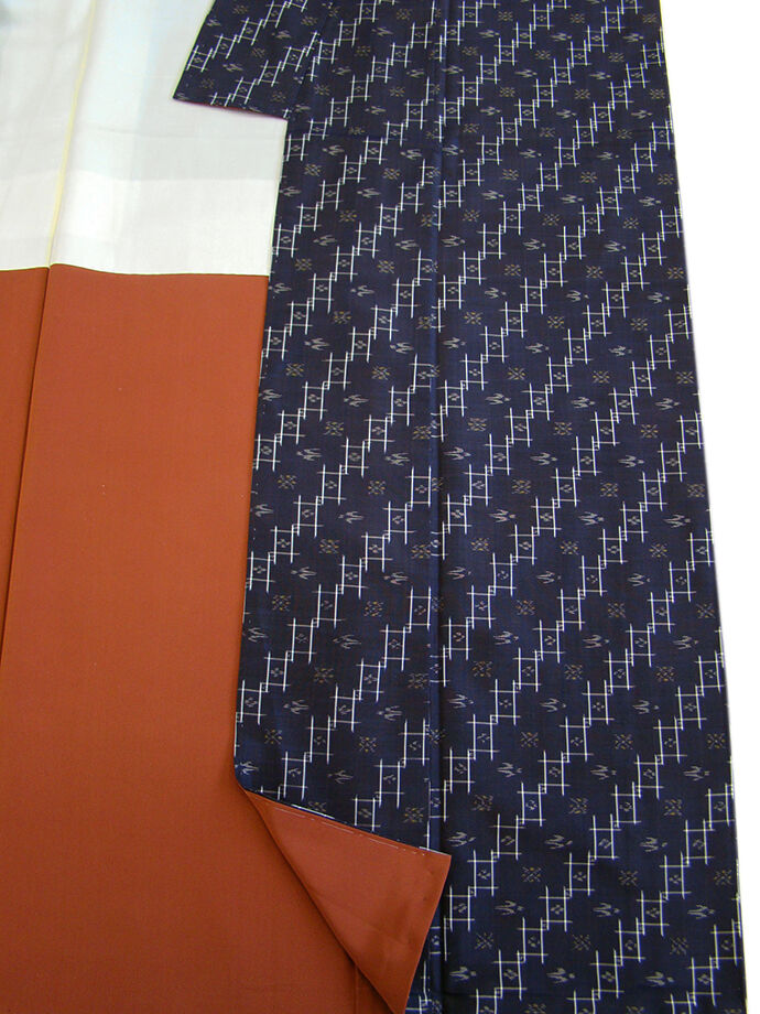 | 商品説明 | こちらのお品は「袷」ですので10月から5月までお召頂ければと思います。 しなやかな紬は、着易く動きも軽く、着くずれしない腰の強さを併せ持った お洒落着としていつでもどこへでもお気軽にお愉しみ頂けご愛用頂けるお品です。 とてもしなやかなシャリやハリ感もある肌触りも心地よいさらりとした紬地は、 渋い青褐色地に白、辛子色の絣柄の織柄、 八掛は赤茶色(正絹)、幅広い年代の方にお召し頂けます。 |