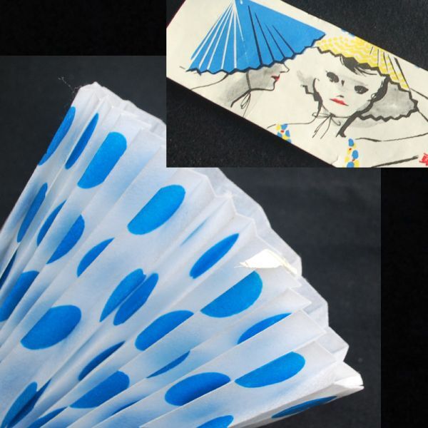 おそらく、1970 年代の日本製の未使用置き古し品で、 東洋レーヨン株式会社製品、発売元は「木村伸株式会社」 「不織布を使って、新しい感覚にデザイン・・・、ビーチハットです。 太陽のもとに、ルイ・ルック ( ?) 水着とのコンビネーション・・・、」などとあります。 ◆サイズ ◆ 折り畳んだ状態で : 27 . 2 × 5 × 厚さ : 1 cm 程 ◆ 状態 ◆ 見たところ特に問題ありません。 |