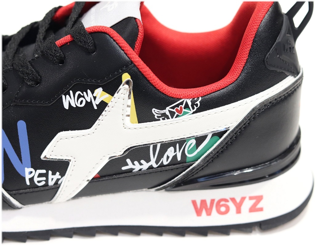 【 定価 】 ¥40,700 (本体価格¥37,000) 【 色 】 ■ Black(ブラック) ※商品画像は実物と色が若干異なって 見える場合がございます。 【 サイズ 】 41 size (25.5-26.0㎝相当) 【 素材 】 - アッパー:ナイロン × 人工皮革 - ソール:ラバーソール 【 原産国 】 Myanmar(ミャンマー) 【 ブランド説明 】 2018年6月に開催された Pitti Immagine Uomo94 会場にてW6YZは新しいスニーカーブランドとして 目利きのバイヤー達の注目を集めました。 ボディ側面の印象的なシンボルマークはベルギーの ファッションデザイナー「ウォルター・ウ゛ァン・ ベイレンドンク」氏によるもので “SPARK(火花)” を モチーフにデザインされています。 W6YZを手掛けるFALC(ファルク社)は1974年、 イタリア中部マルケ州にて子供靴ブランドから始まり 現在ではイタリア屈指のトータルシューズメーカーとして ブランド展開しております。 | ||||||||