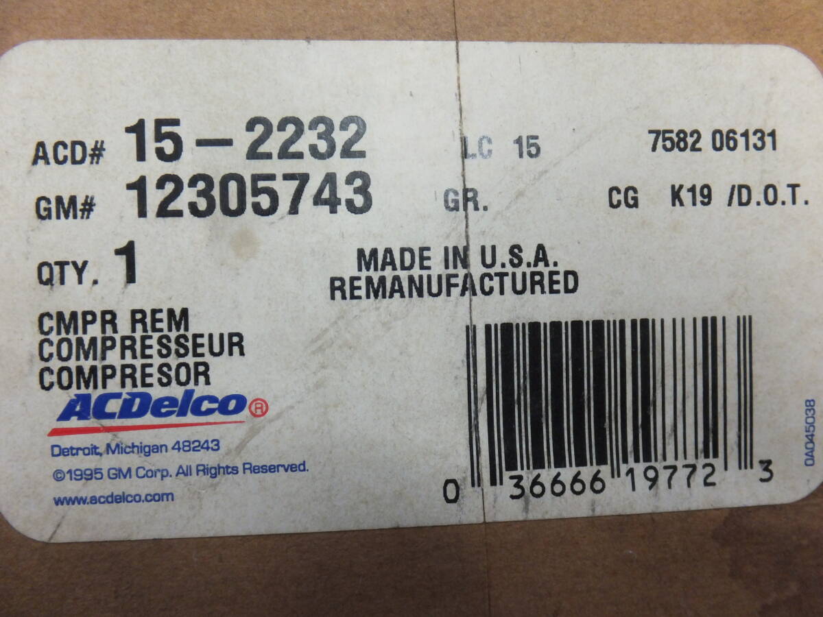 ACDelco#15-2232 A/Cリビルトコンプレッサー Air Conditioning Compressor GM#12305743 1975-1986 シボレー 未使用品 長期在庫 画像で内容ご確認ください。ノークレーム、ノーリターン、アメリカからの輸入品にご理解のある方。発送まで少々お時間をいただく場合がございます。
