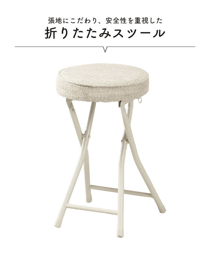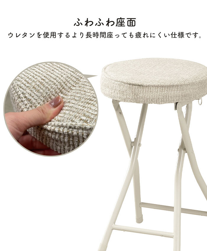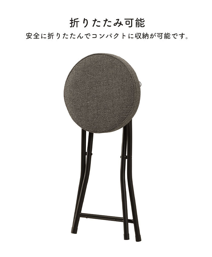 | [本体]約幅30×奥行31.5×高さ49.5cm [折り畳み時]約幅30×奥行11.5×高さ69.5cm [座面サイズ]約φ30cm |