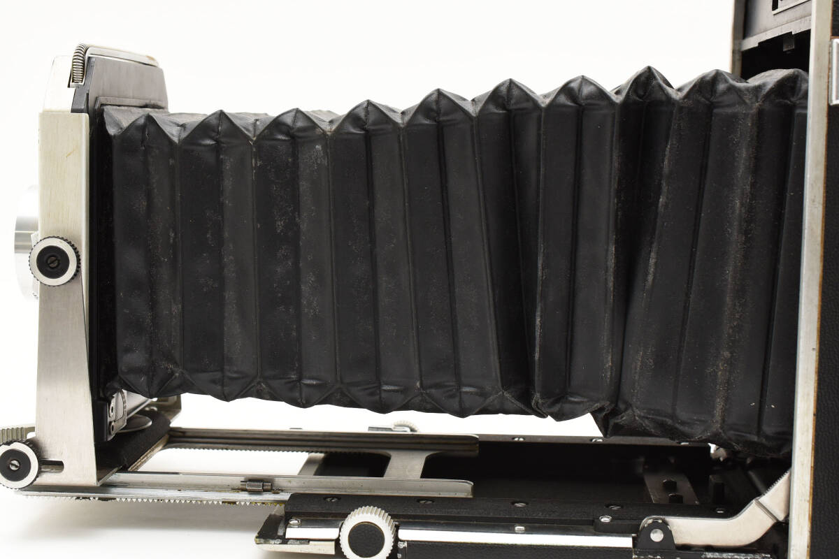 レンズ内にわずかな薄曇り、拭きスレがございます。 スクリーンに書き込みがございます。 蛇腹に割れや穴はございません。 |