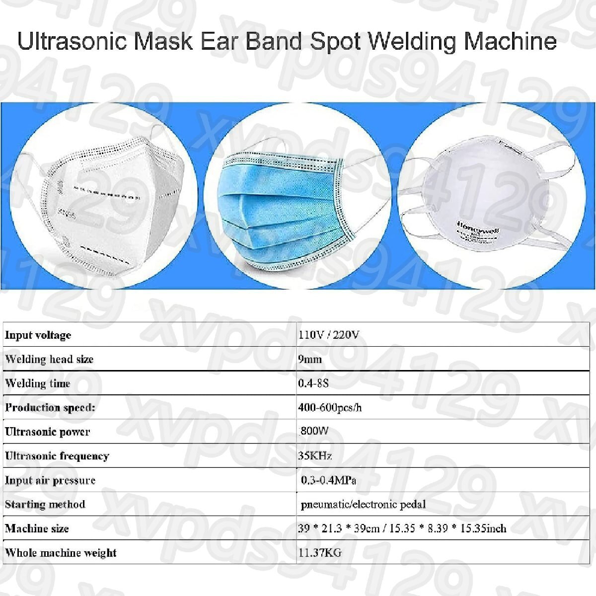 仕様: 入力電圧: 110V / 220V 溶接ヘッドサイズ: 9mm 溶接時間: 0.4-8S 生産速度: 400-600pcs/h 超音波出力:1200W 超音波周波数: 35KHz 入力空気圧力:0.3~0.4MPa マシンサイズ: 39 * 21.3 * 39cm / 15.35 * 8.39 * 15.35インチ 機械全体の重量: 11.37KG 梱包サイズ: 42.5 * 25.6 * 45cm 総重量: 12.5kg 用途:熱可塑性溶着、ナイロン布溶着 始動方法:空気圧/電子ペダル アクセサリー: 1 *デスクトップ分割溶接機 1 *電源コード 1 * ペダルコントローラー 1 *交換用アクセサリー