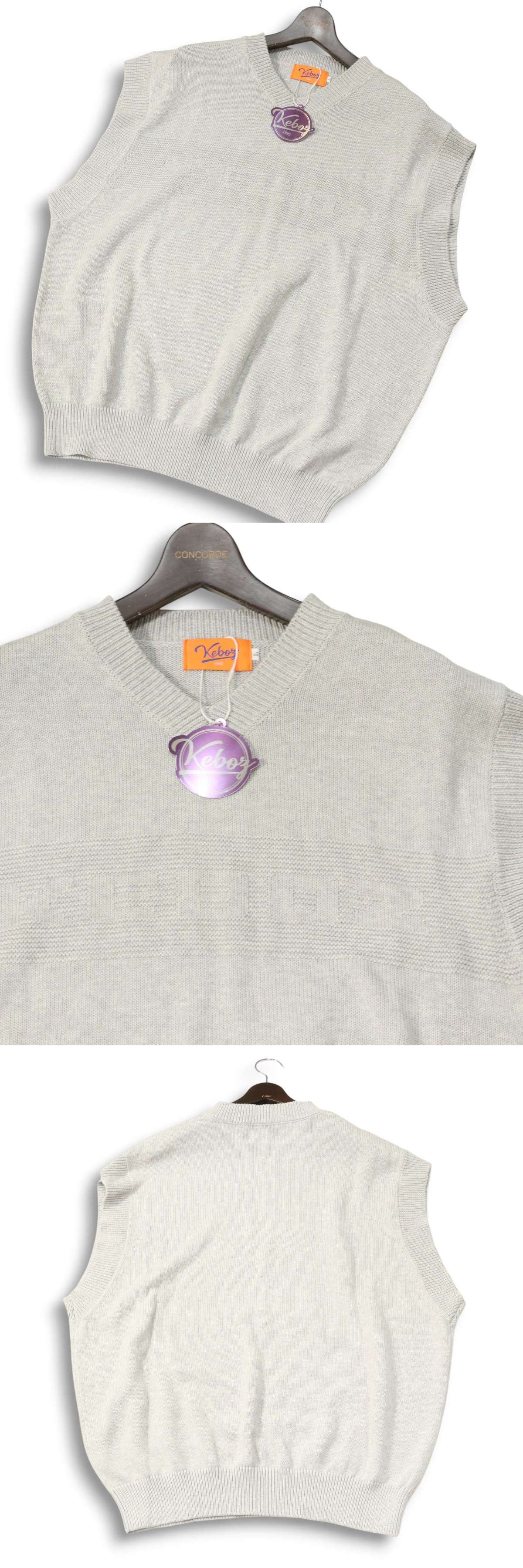 | 【新品 22AW】 Keboz ケボズ 通年 ロゴ ジャガード織り★ Vネック コットン ニット ベスト Sz.L メンズ 灰 未使用 I5T01018_4#L | |||