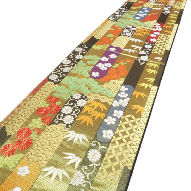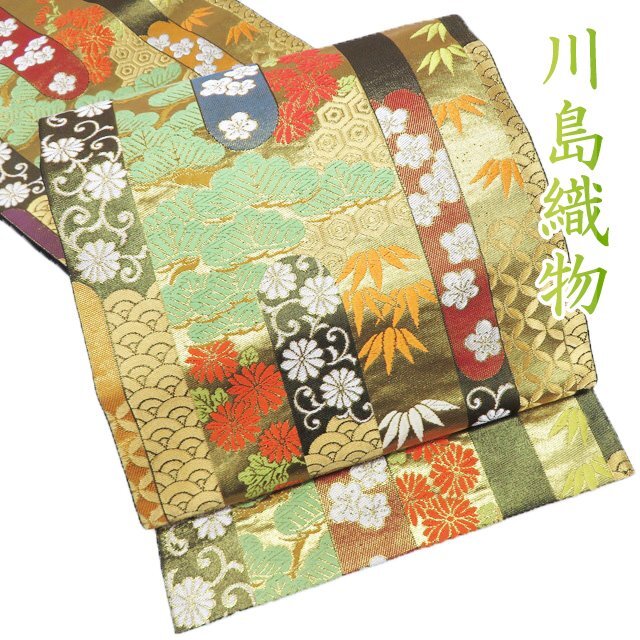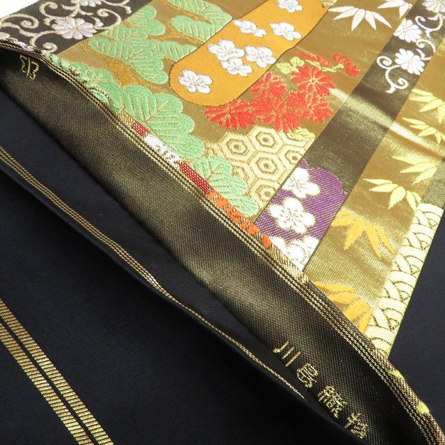 サイズ 434cm x 31cm 素材 正絹 商品ランク C お色 黒色 多色 金 初代川島甚兵衞が京都で創業した西陣の老舗【川島織物】 。 現在は神戸のインテリアメーカーと合併し、川島織物セルコンという社名に変更しており、主に内装、インテリアに力を入れております。 数々の独自技術を考案し、高いデザイン性と高い品質は多くの着物ファンの心を虜にし、品質の良さとデザイン性の高さから思わず集めてしまいたくなるという声も。 是非お手に取ってご覧ください。 お太鼓上に黒い点、真ん中辺りに点汚れ、タレ先に糸のほつれがございますが、まだまだご着用いただけるお品物です。 一部商品は実店舗・他サイトでも並行して販売しておりますので売り切れの際はご了承ください。 その他多数販売中 ho- | ||||||