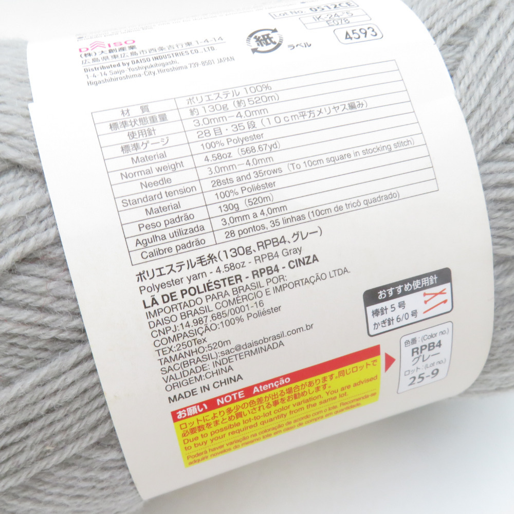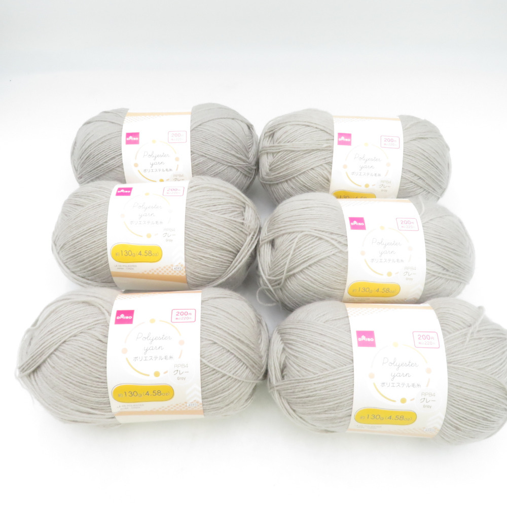 | DAISO ダイソー 毛糸 大玉毛糸 ポリエステル100% グレー色 6玉 約130g 約520m ロット混在 中細 未使用品 |