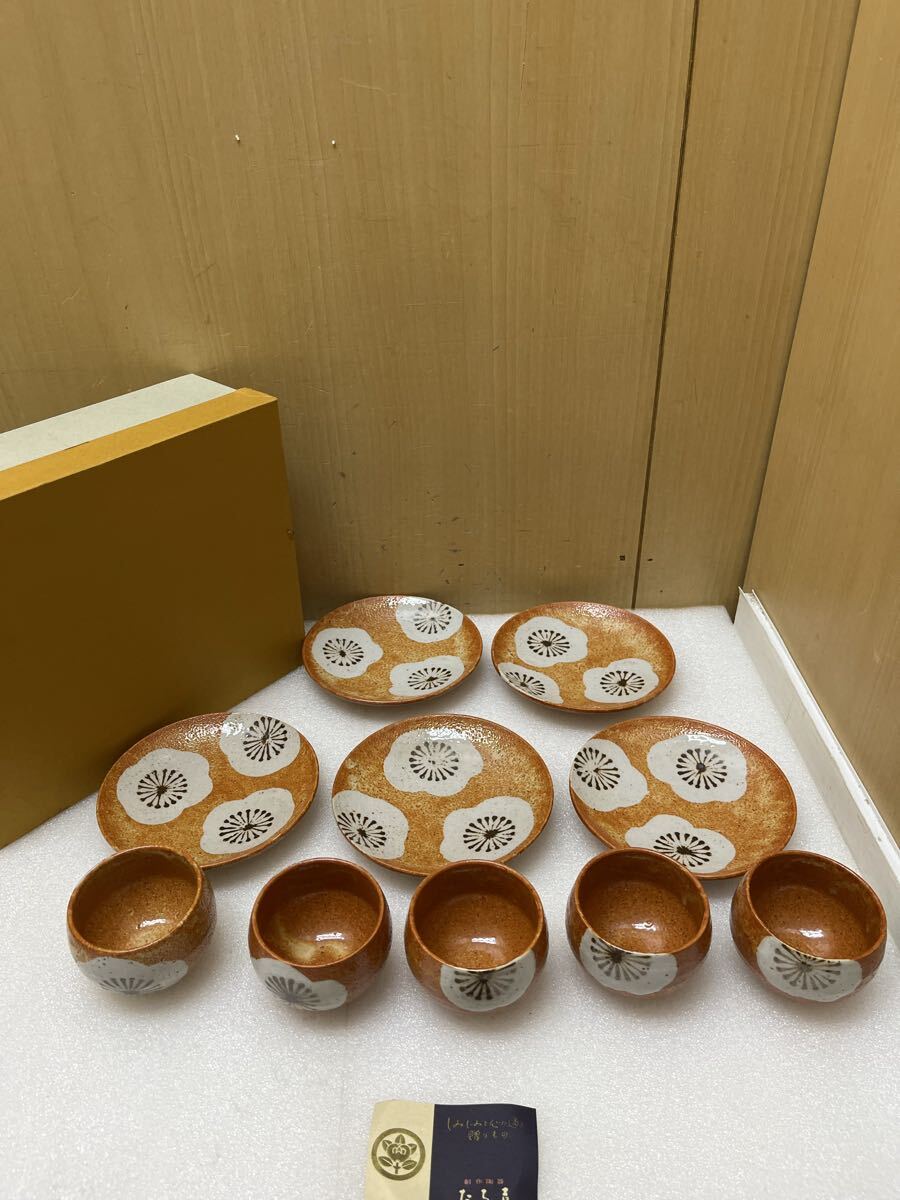 RE6943 皿 湯呑み 紅志野梅 たち吉 橘吉 未使用品 陶芸品 現状品 0820