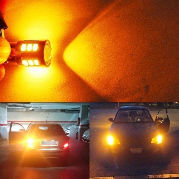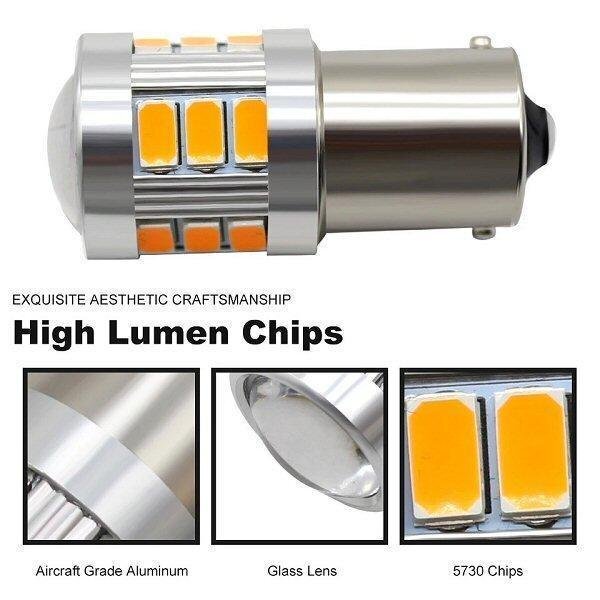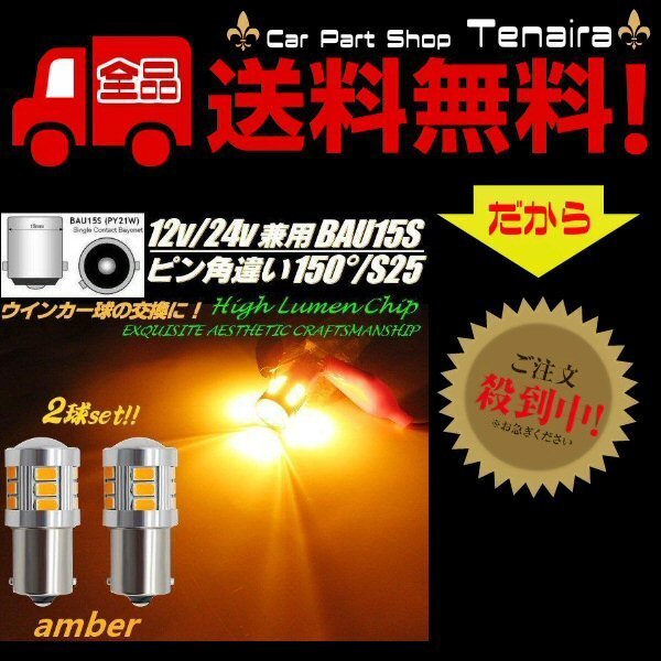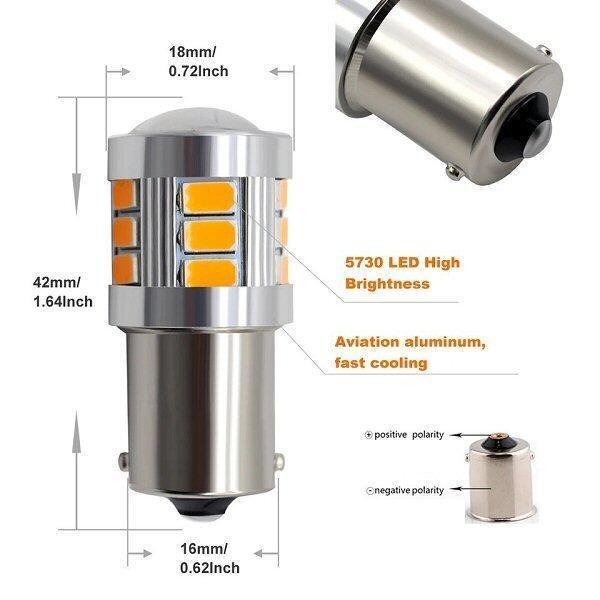 ★☆無極性!ウィンカー球の交換に!☆★ 12v/24v兼用!激光!LED電球 BAU15S/ピン角違い150度/S25シングル球アンバー2個セットになります。 ハイルーメン5730チップで更にプロジェクターレンズ搭載で激光で照射します。 中央部にも3チップ装備し光の反射で超拡散させます。 抜群の拡散性を実現!非常に優れた商品となります。 兼用タイプの為に普通車からトラックまで対応します。 サイドマーカー、ウインカーランプ、ナマズランプ、バスマーカーなど形状が合えば取付可能です。 更に無極性の為に差し違いがありません。 LEDバルブの弱点であった光の広がりが解消しました。 LEDですので消費電力が少なく熱の発生が電球と比べて非常に少ないのが特色です。 ■仕様&セット内容 ■ご注意 | |||