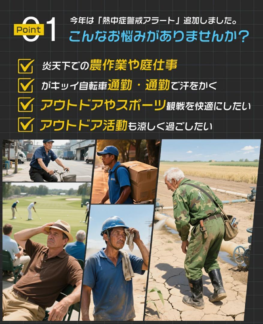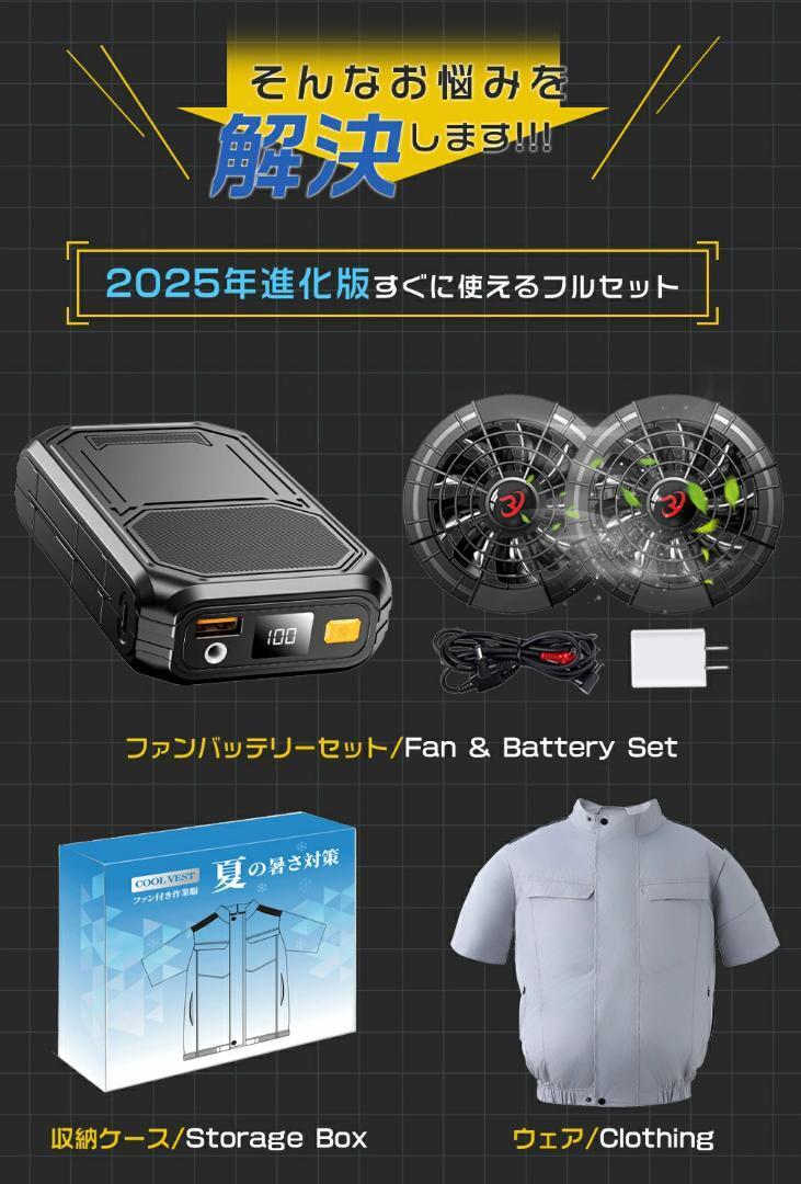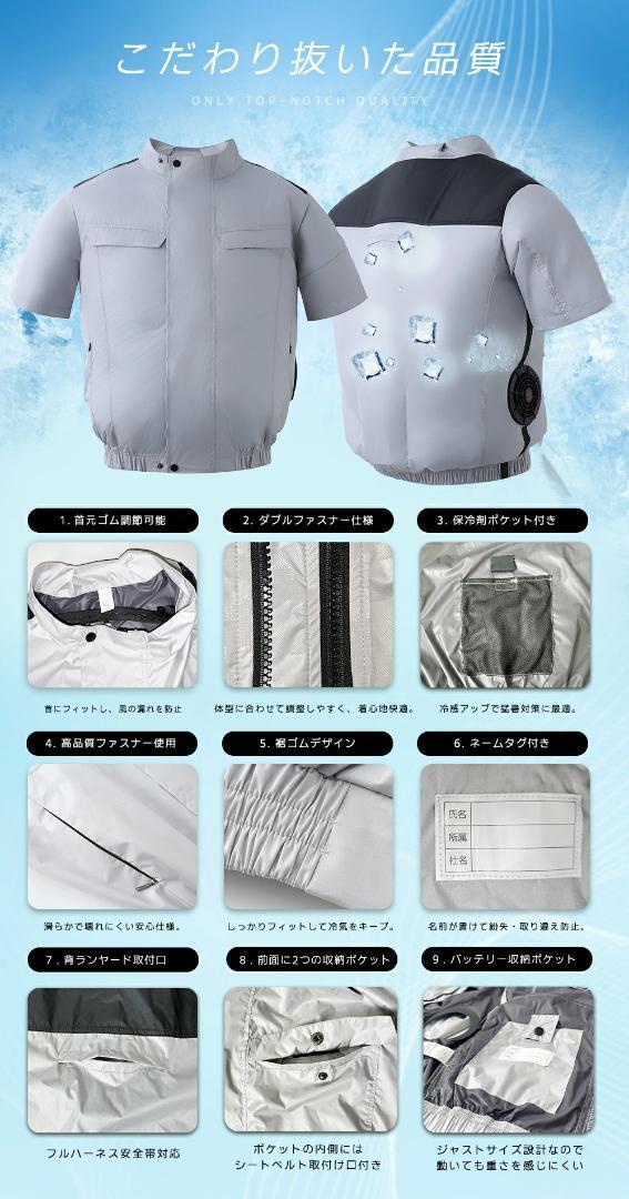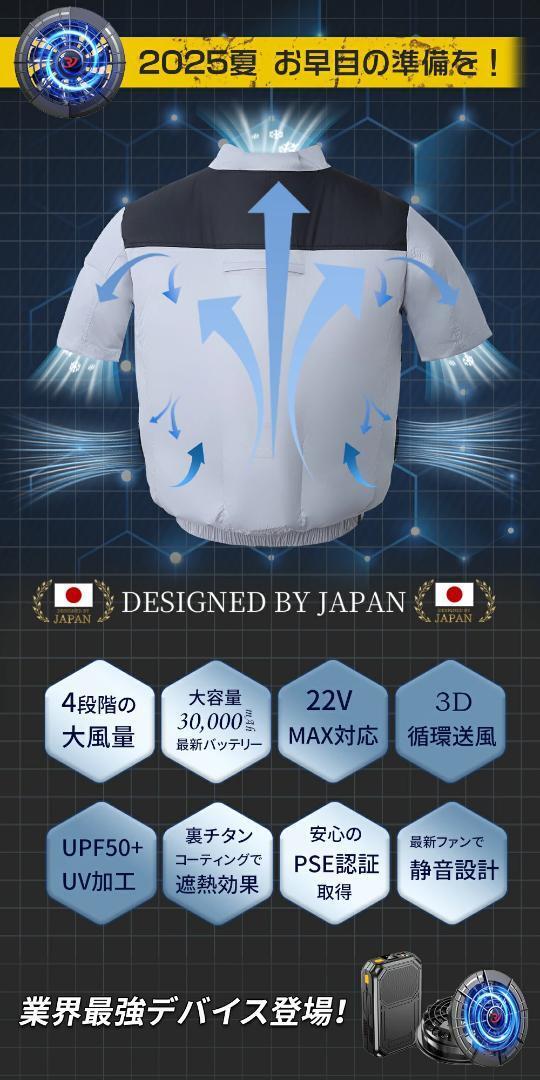| 【おすすめポイント】 | ●【9枚羽強力ファン& 3段階風量】 ファン付き作業服で、3つの小さな高性能ファンが取り付けられています。新作ファンは、さらに強力で静音になりました。空気循環をすばやく強化し、体温を下げます。エアコンがない場合にすごく役立ちます。 ●【大容量バッテリー&長時間稼動】 充電時,5V2A以上のACアダプターをお使いください 30000mAhの大容量バッテリー搭載、最大24時間稼動可能ですので長時間の屋外作業でも安心です。 ●【UVカットUPF50+】 |