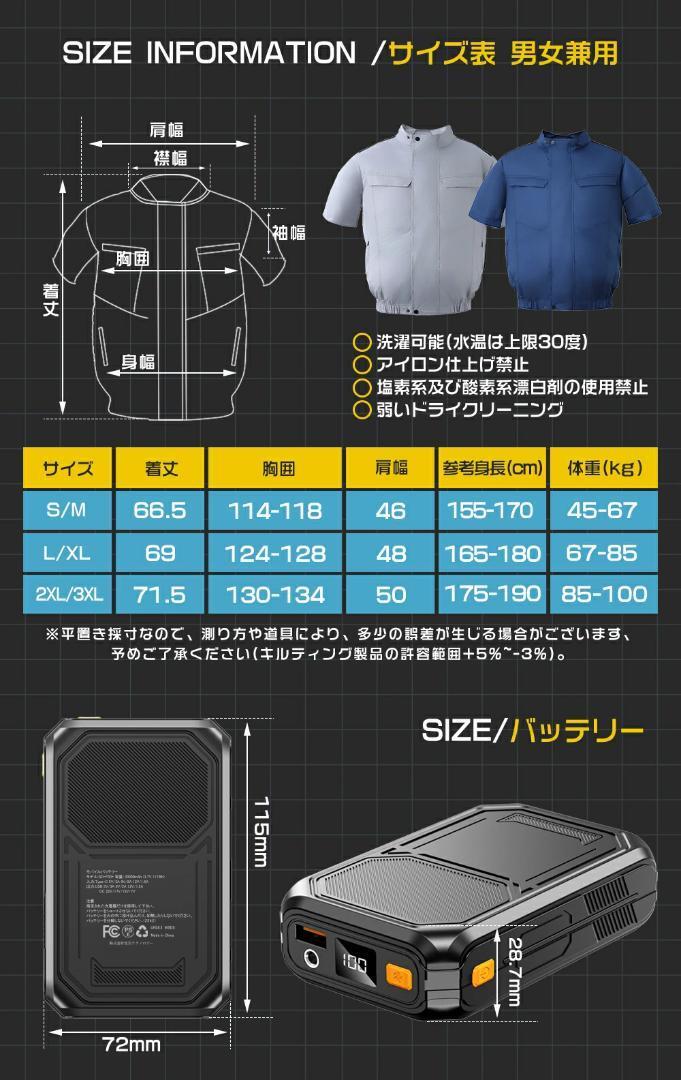 | ※製品仕様 | ●ブランド名: ROASICEE ●品番:SKTC3 ●素材:100% ポリエステル ●PSマークの種類:PSE ●バッテリー容量:30000mAh ●作動電圧:7V/12V/17V/22V ●カラー:グレー/ブルー ●サイズ:L/XL |