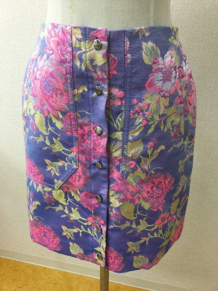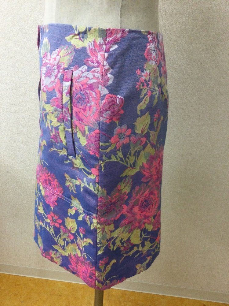 | 管理番号:135388 クローラ 薄青にピンクの花柄スカート 表示サイズ:38 実寸(参考)