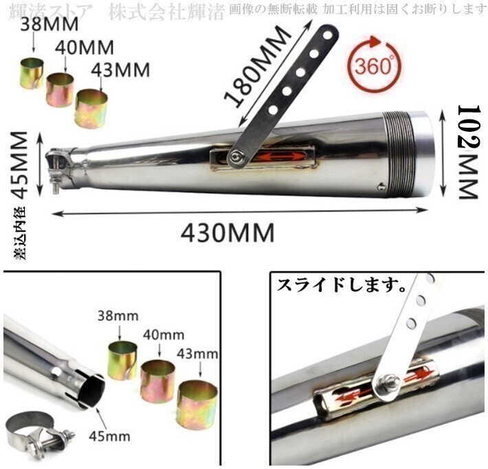 ご覧いただきありがとうございます。 【発送方法】 日本郵便ゆうパック(提携版) (1-2営業日以内に奈良県から出荷致します。) マフラーエンド部分が美しい、 高級感のあるスリップオンマフラーです。 【タイプ】 Cタイプ
