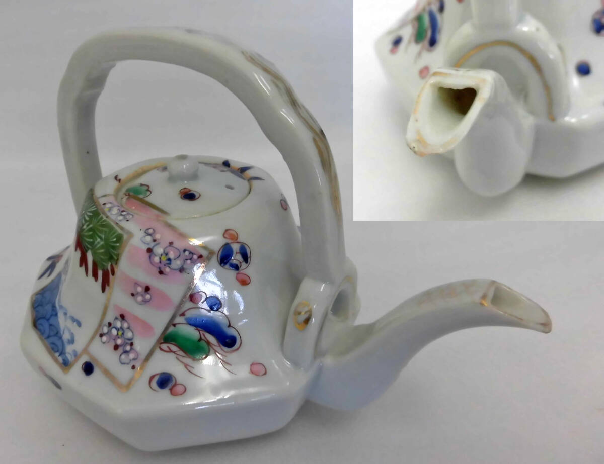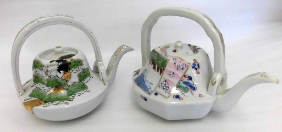 | 品名:古いお屠蘇器 二種類 日本伝統工芸品 作家:日本製 寸法:丸形 胴径≒10.5㎝ 丈≒12㎝(取手含) 八角形 胴径≒12㎝ 丈≒12㎝(取手含) 状態:全体に経年経過の小疵、色トビなどあります。 八角形の口先にわずかなカケがあります。写真でご判断ください。 いずれも大きなダメージ「ワレ、ヒビ」はありません。 できるだけ説明いたしますが、写真でご判断ください。写真の色の誤差はご容赦ください 出品者の主観です:昔の日本ではお祝いの席やお正月には御屠蘇がつきものでした。 | ||