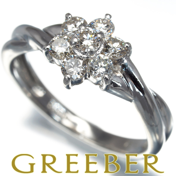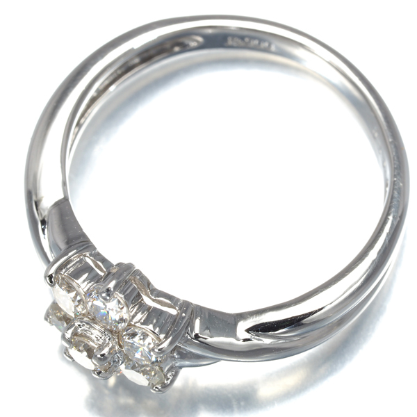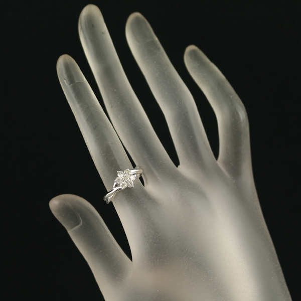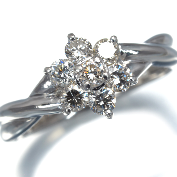 仄かな色味がございますが、内包物も少ない瑞々しい透明感から眩い輝きを披露するダイヤモンドをフラワーパヴェセッティングで演出した上品なリングですね。 |