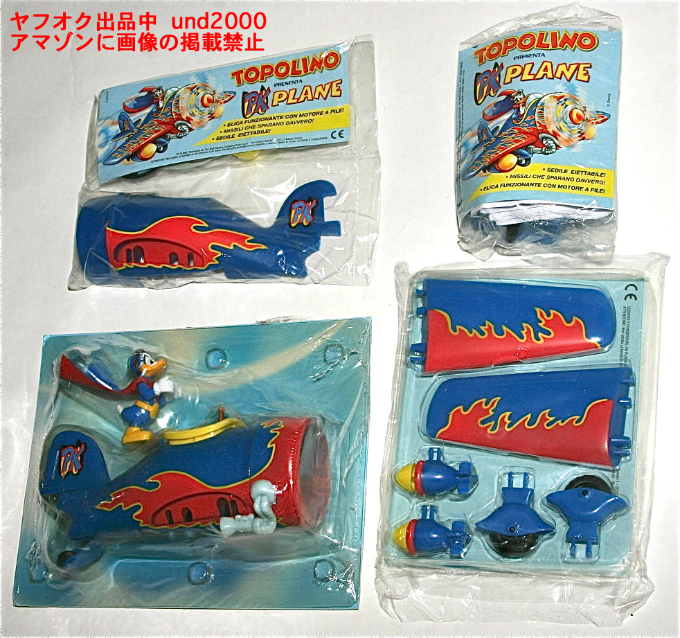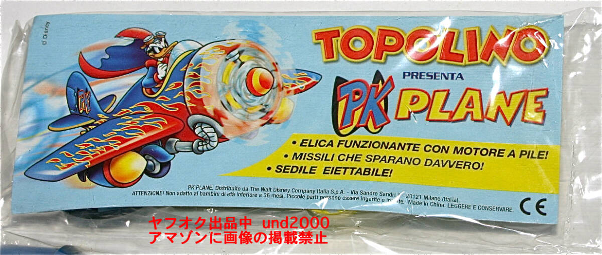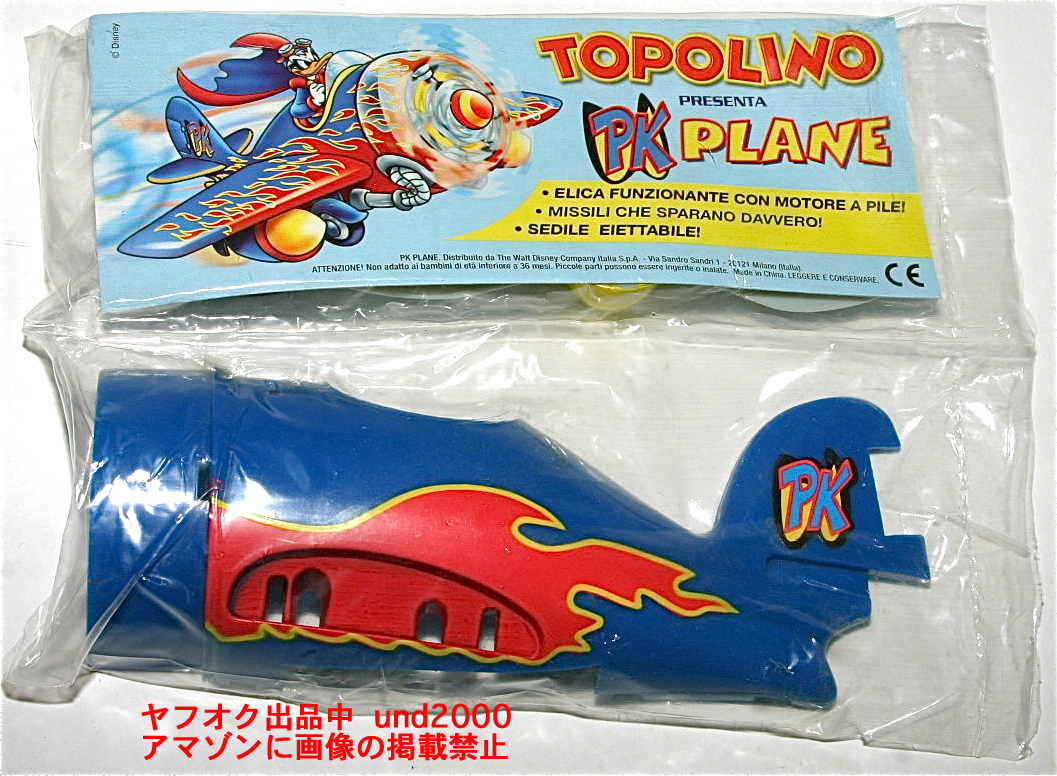 PK (Paperrinik) Plane。ダック・アベンジャー、イタリアではPK(パペリニック、ドナルド・ダックのスーパーヒーロー)の飛行機。イタリアのディズニー週刊コミック誌、Topolino の4冊分の付録で完成するトイ。トッポリーノ(Topolino)はイタリアでミッキーマウスの事。プラスチック製。単四電池2本使用(別売り)でプロペラが回転します。作動確認済み。組立てると23X19センチ、高さ10センチになるようです。イタリア語の説明書付き。付録のみでマガジンはありません。未使用、未組立品。量産品のクオリティに付いては極端に状態の悪いものは別記しますが、ノークレームでお願い致します。お支払いはヤフーかんたん決済のみ。東京発、ゆうパック持込60サイズ(東京700円 - 沖縄1330円)、または定形外郵便(追跡番号、保険無し)660円での発送となります。(上記の送料はこの出品物のみの料金となります。複数落札、同梱包発送の場合、重さ、サイズが変わりますので送料が変わります。)3日以内のご連絡、かんたん決済の支払期限内(通常5日、支払方法により異なります)のお支払い厳守でお願いします。入札される前に「自己紹介」もあわせてお読みください。 検索用ワード トッポリーノ トポリーノ マガジン Magazin Mickey Mouse Donald Duck Disney Gadget ガジェット パペリニック ペペリニク スーパーダック ダック アベンジャー Duck Avenger パペリーノ PK ダックテイルズ Duck Tales プレーン| 出价者 | 信用 | 价格 | 时间 |