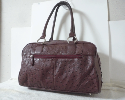 | オーストリッチ エキゾチックレザー 本革 赤茶系 ハンドバッグ レディース | ||