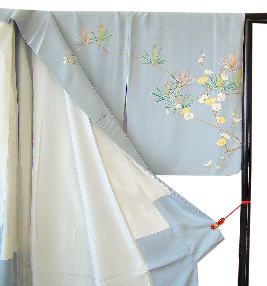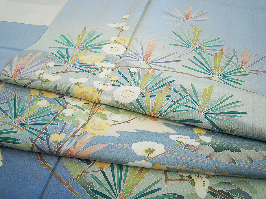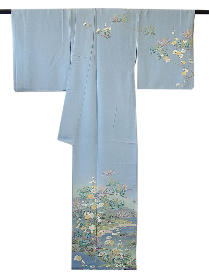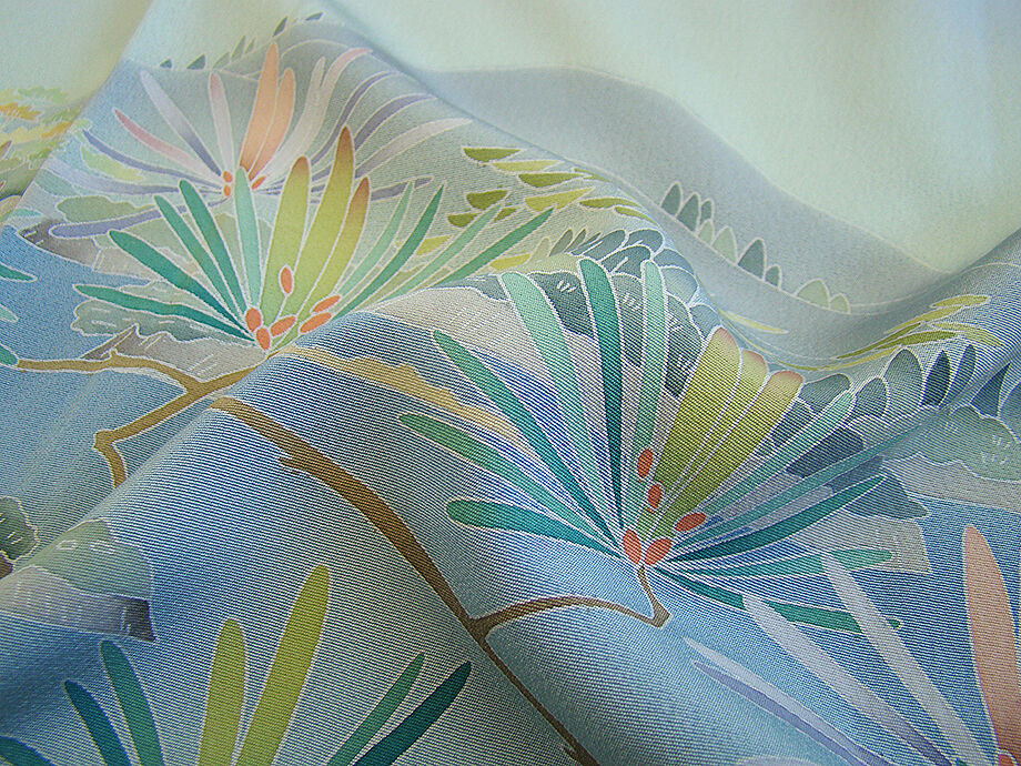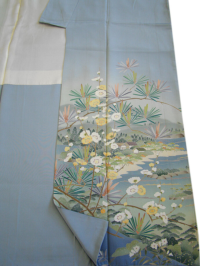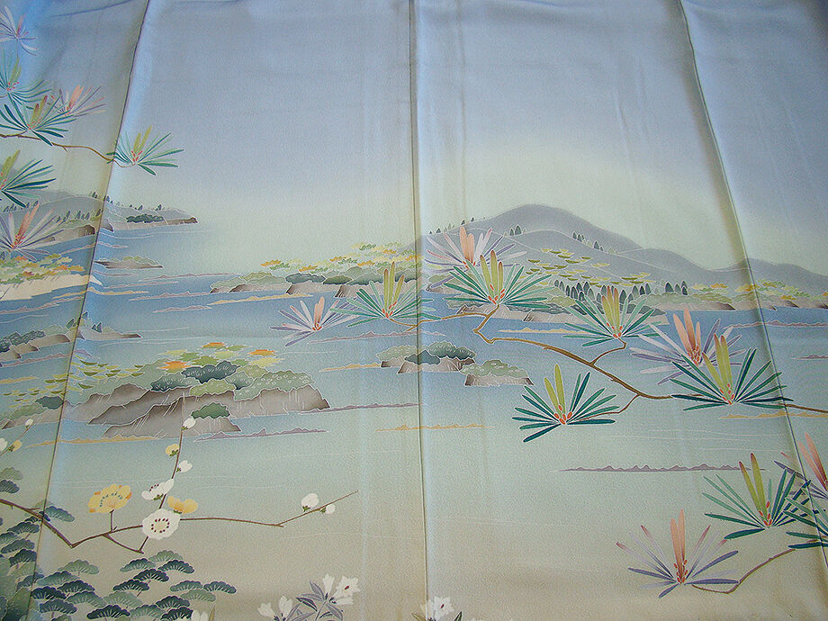 商品説明 | こちらのお品は「袷」ですので10月から5月までお召頂ければと思います。 とてもしなやかで柔らかな手触りの着心地良い重めの上質な極上一越地の生地、 水色地に裾にかけて浅緑、クリーム色ぼかしに花木柄の本加工染、 気品に満ち溢れた彩りが正統派のお着物として一枚は欲しい逸品の素敵なお着物です。 八掛は共色に柄入り(正絹)、作家の落款入り、幅広い年代の方にお召頂けます。 |