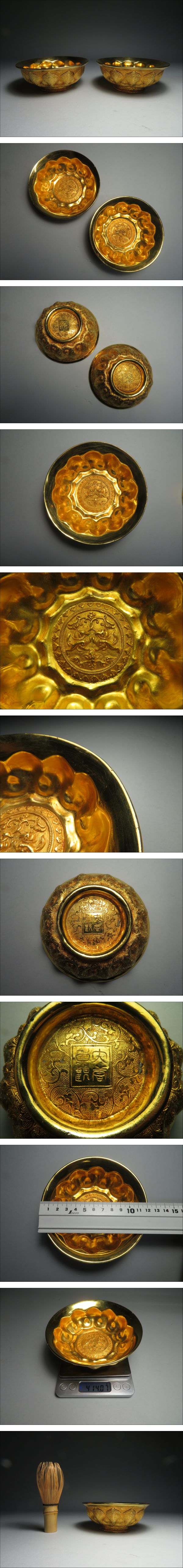 【東】時代物 塗金碗 ー対 中国美術/古美術・骨董品 | ||