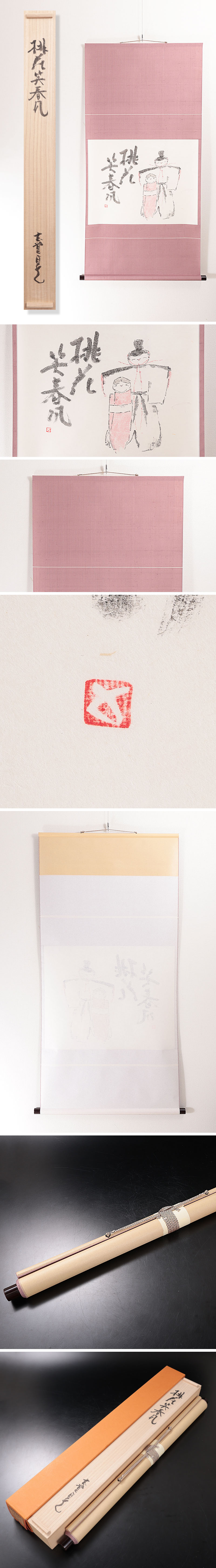非常に雰囲気の良い書に仕上がっております。 【桃花笑春風(とうかしゅんぷうにえむ)】・・・春風に誘われて桃の花が美しく微笑んでいるように咲いている様子を表現した言葉です。中国唐代の詩人、崔護(さいご)の詩「人面桃花」の一節に由来し、人の姿は変わっても自然の花は変わらず咲いている、という無常観を表しつつも、その力強い生命力に希望を見出す意味合いも含まれます。 ★商品は杉本貞光の作品である事を保証致します。 ※掛軸の同梱発送について※ 掛軸とお茶碗などの茶道具との同梱は、破損の危険性が非常に高いため、基本的に承っておりません。予めご了承下さいますようお願い申し上げます。掛軸同士やその他形状が近い商品に関しては同梱可能な場合もございますので、その際は当店よりお知らせ致します。 |