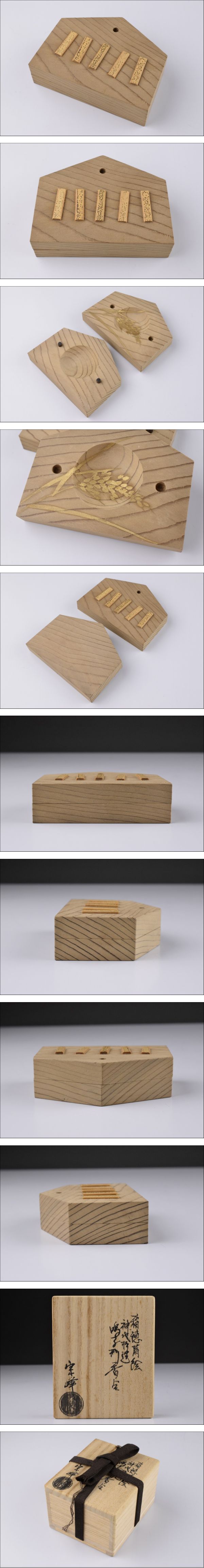 品 名:宗峰 稲穂蒔絵 神代杉造 鳴子形 香合 共箱 茶道具 香道具 寸 法:高さ 2.1㎝ 幅 7.1㎝×5.3㎝ 総重量:19g 状 態:小傷等ございます。 | |||