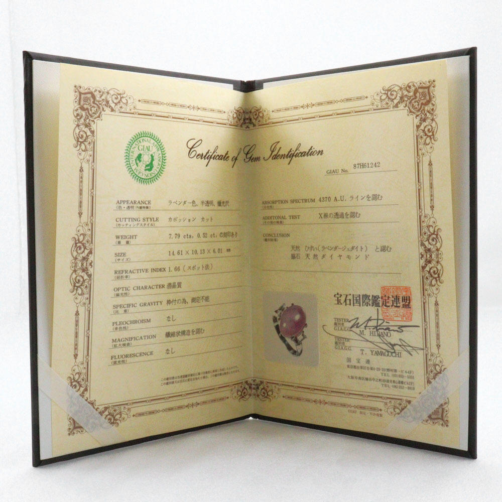 | 商品説明 | ■管理番号:☆☆H172825618☆☆ ■商品名:リング・指輪 ■対象:レディース ■素材:Pt900プラチナ / ラベンダー翡翠 / ダイヤモンド ■重量:約8.7g ■刻印:7.79/D0.52 ■石目:ラベンダー翡翠7.79ct/ダイヤモンド 0.52ct ■付属品:鑑別書 | |