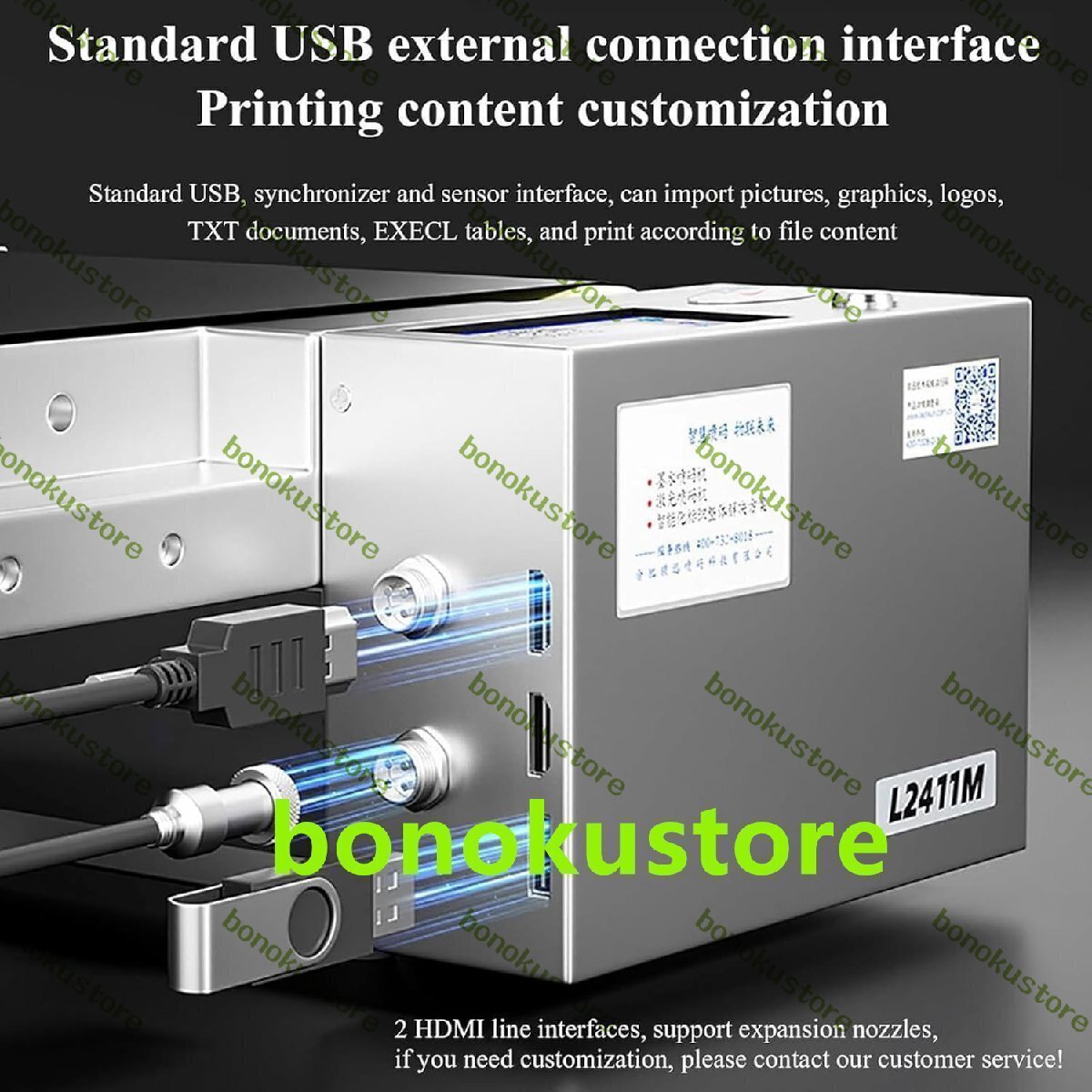 商品説明 商品の説明 名前:自動インクジェットプリンター コーディング距離: 2-5mm 印刷高さ:12.7/25.4/50.4mm 印刷行数:1~6行調整可能 印刷精度:300/600dpi 操作インターフェース:4.3インチタッチスクリーン 印刷速度: 0-99m/分 (材質/環境/解像度などの要因に影響さ名前:自動インクジェットプリンター コーディング距離: 2-5mm 印刷高さ:12.7/25.4/50.4mm 印刷行数:1~6行調整可能 印刷精度:300/600dpi 操作インターフェース:4.3インチタッチスクリーン 印刷速度: 0-99m/分 (材質/環境/解像度などの要因に影響されます) カウントシリアル番号: 1 ~ 9 桁のシリアル番号は可変です システム言語: 複数の言語をサポート 通信インターフェース:電源/USB/光ファイバー/HDMIケーブル 本体重量:約9kg(インクカートリッジ/電源コード含む) 電源要件: 110-220VAC 50/60HZ システム消費電力: 60W 機械サイズ: 600*330*145mm 作業環境:温度:5~35℃、湿度:10~90%