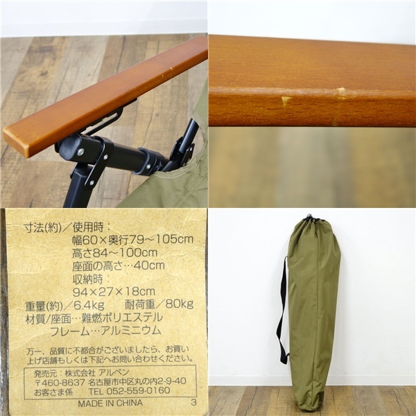 | 美品 アルペンアウトドアーズ Alpen Outdoors ハイバック チェア リクライニング 折り畳み イス 椅子 キャンプ アウトド |
